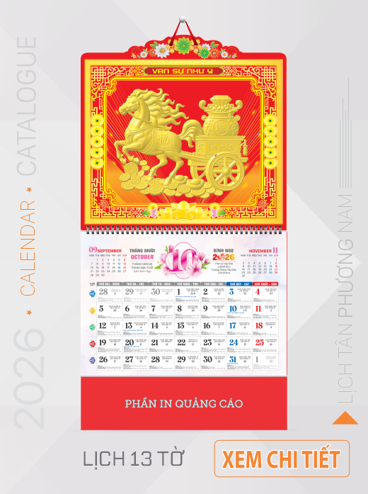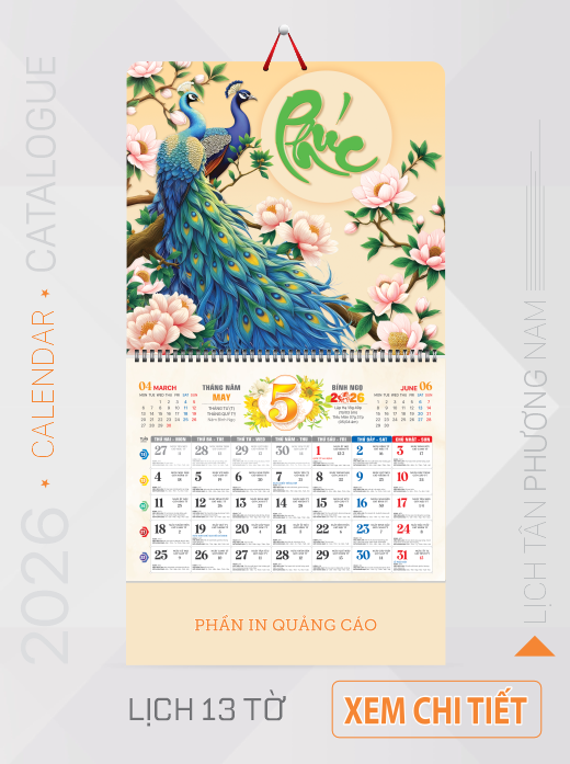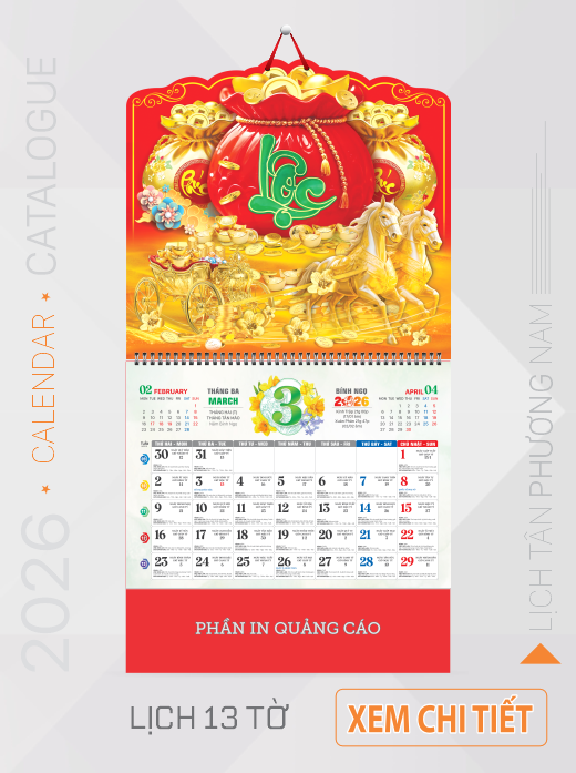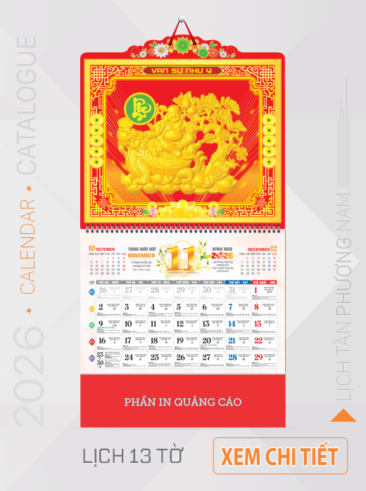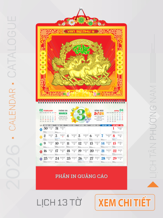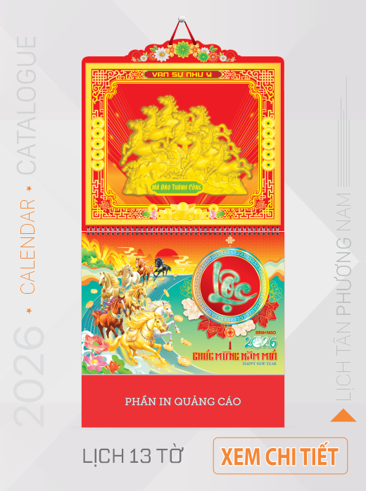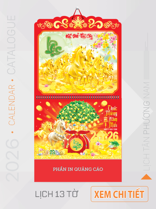 Công ty in lịch tết An Hảo là sản xuất lịch tết chuyên nghiệp với chiết khấu cao cho đại lý lịch trên toàn quốc. Hiện tại trong năm Bính Ngọ 2026 chúng tôi cho re mắt 10 lịch treo tường. Kính chúc Quý khách hàng có những trải nghiệm thú vị qua từng trang lịch.